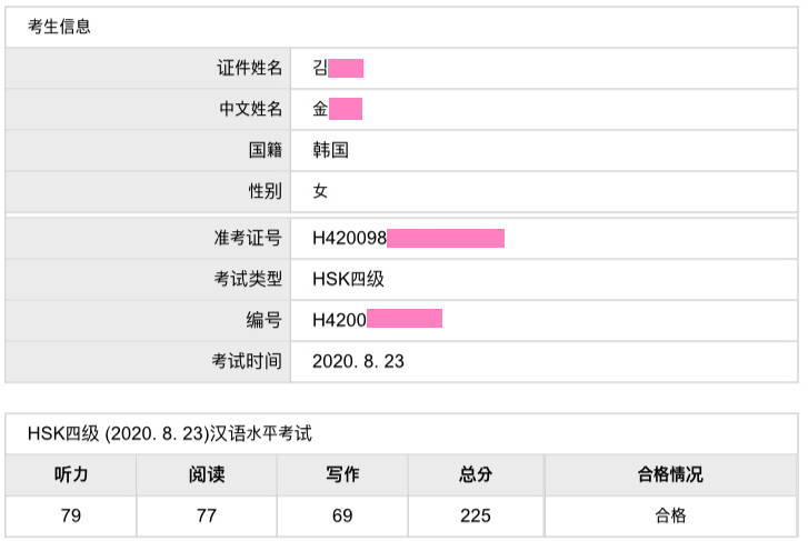 최재원 강사 강의전략: 먼저 김** 학생 HSK4급 취득 축하드려요~~ 김** 학생은 기본적으로 너무나 열심히 시험을 준비해주셔서 사실 걱정이 없었습니다. 출석률, 단어시험, 숙제완성도, 오답노트작성등 8주동안 대단한 집중력을 보여주셨고 이해 안가는 문제가 있을 때 쉬는시간에 질문하거나 집에 돌아간 후에 카톡으로 질문하는 등의 방법으로 이해가 될 때까지 완벽함을 추구하셨어요ㅎㅎㅎㅎ 제가 수업 때 마다 수강생들에게 "이번 특강 수업에서 다루는 내용과 숙제만 잘 해주시면 4급 취득은 문제없다!" 고 말씀드렸었는데 김** 학생이 제 말을 증명해준것 같습니다. 4급을 패스했을 뿐 아니라 좋은 점수까지 안겨주셔서 너무 기뻐요! 다시한번 축하드리고, 5급까지도 이제 멀지 않은것 같아요^^