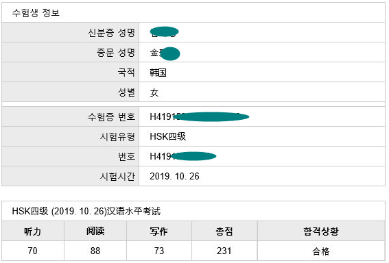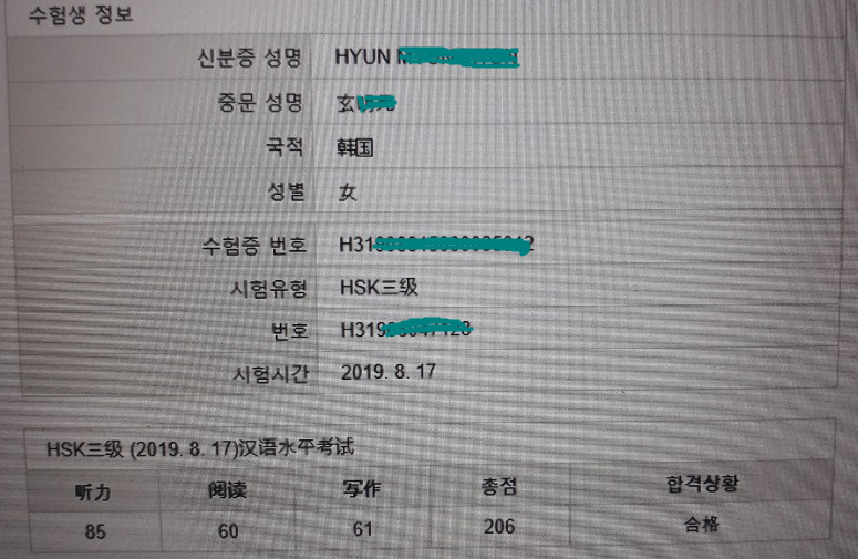 3개월동안 주3회 HSK3급을 준비했습니다. 처음에는 한자가 어려웠지만 계속 공부하다보니 실력이 점점 느는것을 느낄 수 있었습니다. 선생님 감사합니다.
