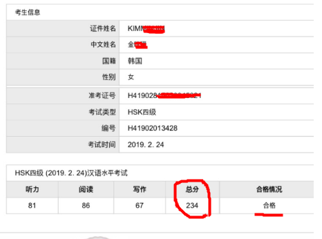 최재원 강사 강의전략: 김**님 HSK4급 합격 축하 드립니다!! 월요일부터 금요일까지 20일 동안 매일 세 시간씩 힘들고 딱딱한 수업임에도 불구하고 열정적으로 수업에 임하고 열심히 해주셔서 가장 기억에 남았던 학생입니다. 중국어에 대한 기초가 어느 정도 있는 상태였고 레벨 테스트를 보고 HSK4급반을 추천해드렸지만 자신 없다고 하시면서 ‘잘할 수 있을까요?’라고 물어보셔서 일단 저만 믿고 따라오라고 했습니다! 이번 HSK4급 방학특강은 단기간 취득을 목표로 단어와 문법 기초를 탄탄하게 하고 연습문제들을 풀면서 최신기출문제 유형 파악에 집중을 했습니다. 특히 HSK시험은 단어 외우는 것이 무엇보다 중요하기에 무작정 외우라고 하기보다는 듣기에 대비하여 발음을 들어보고 같이 읽어보기도 하고 호응구조와 예문을 들어가면서 동시에 작문연습도 할 수 있게끔 수업을 진행했습니다. 숙제는 단어외우기에 초점을 두고 당일 배운 내용들을 학습일지에 써오고 다음날 테스트하고 문제를 풀어보고 해석 위주로 냈습니다. 방학에도 매일 아침 일찍부터 나오셔서 세 시간 동안 수업 듣고 또 복습하고 제대로 쉬지도 못하셨는데 열심히 해주시고 너무나 좋은 성적까지 받으셔서 감사하고 다시 한번 축하 드립니다. 자신감을 더 가지고 다음 5급도 저 믿고 따라와주세요^^